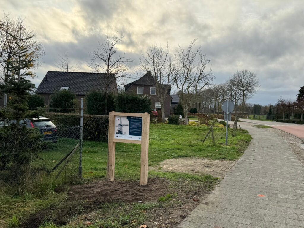 De kleinkinderen van Ton en Hemmie onthulden het monument, een in de grond geboord roede-eind, dat als stille getuige is achtergebleven na de stormramp.